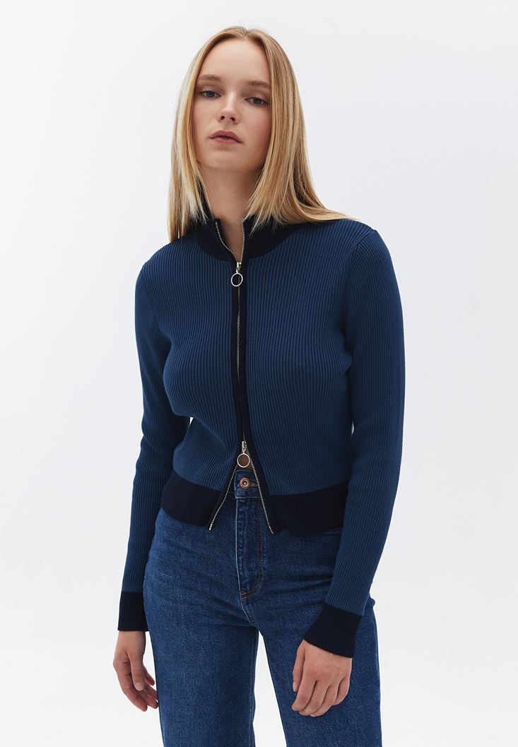 Lacivert Yüksek Yaka Fermuarlı Hırka