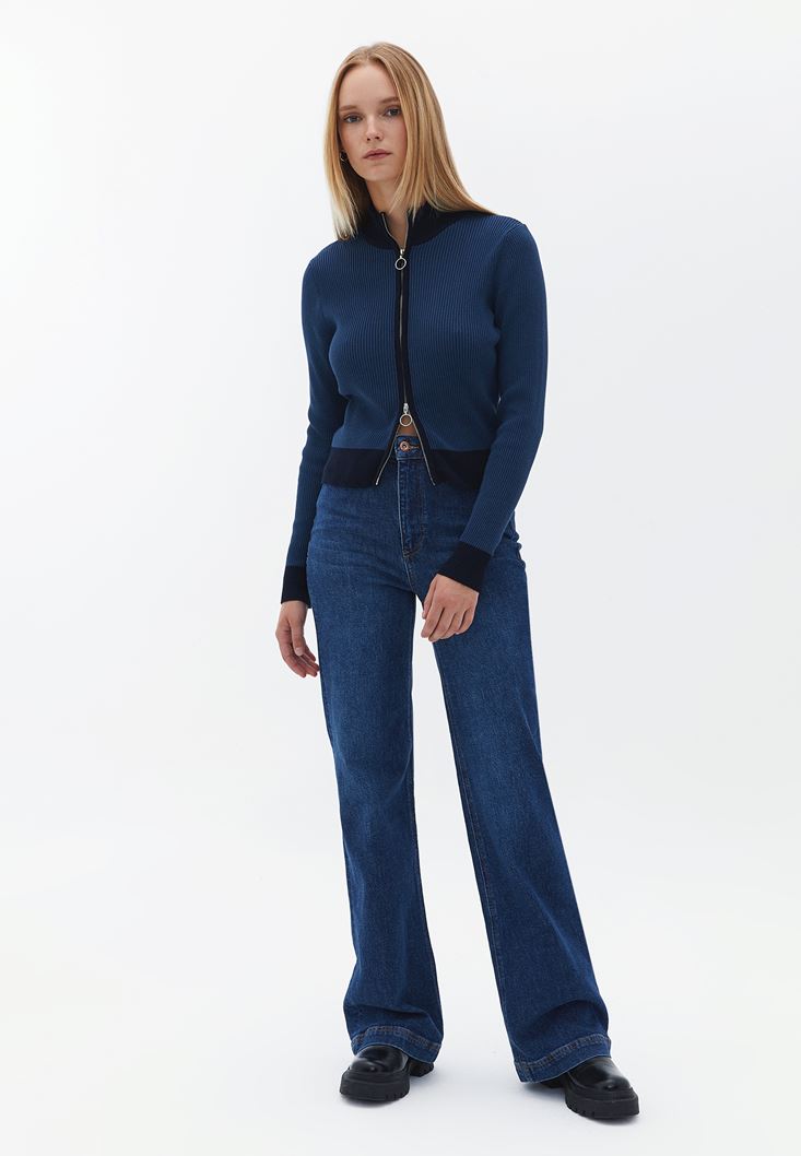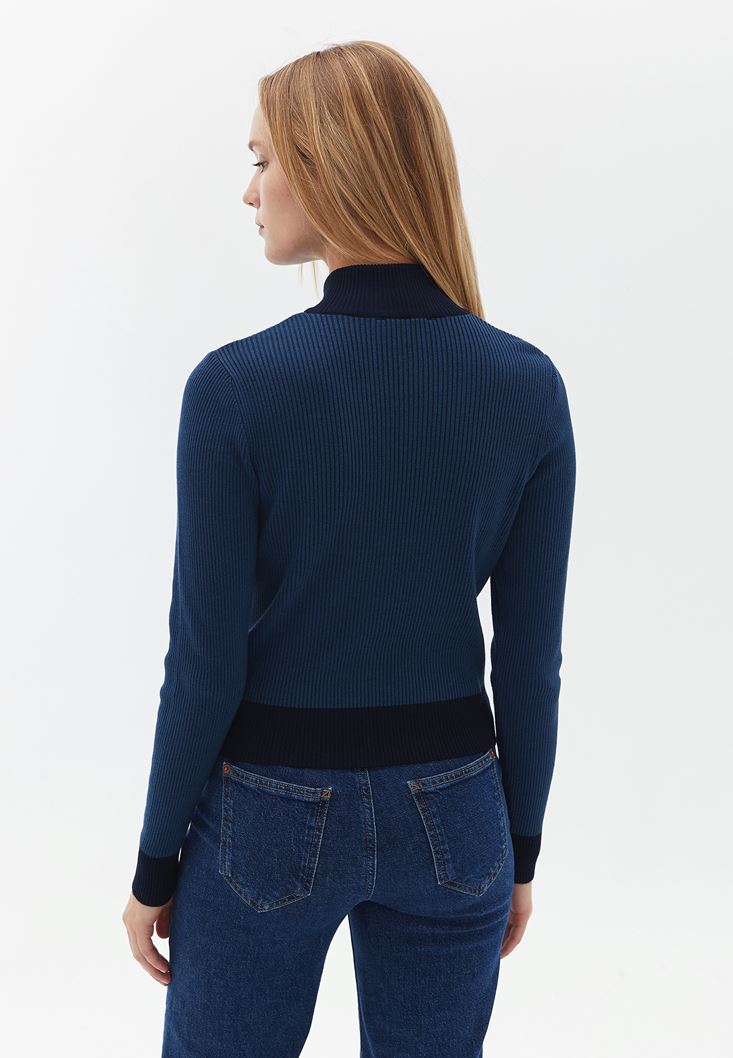 • Bayan Lacivert Yüksek Yaka Fermuarlı Hırka