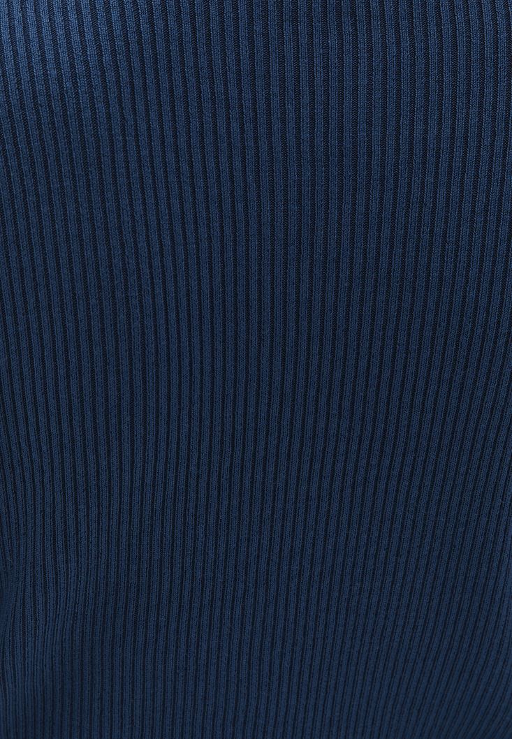 Viskon karışımlı triko, yüksek yaka, uzun kollu, bedeni saran fit, crop kesim, fermuar kapamalı.