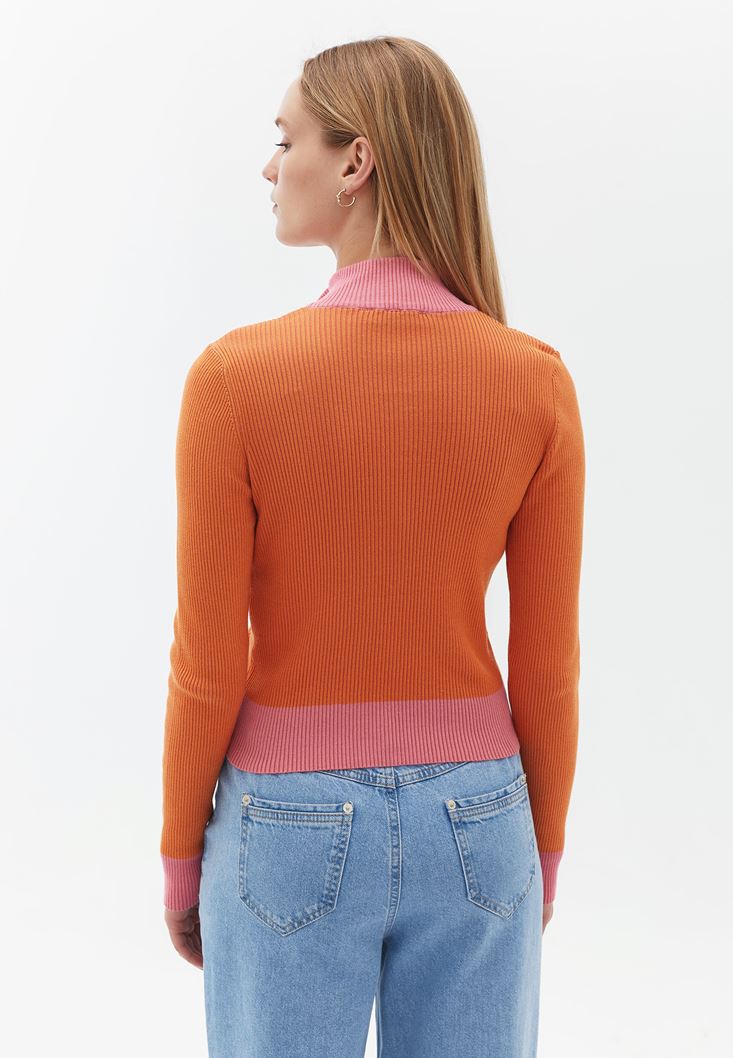 • Bayan Turuncu Yüksek Yaka Fermuarlı Hırka