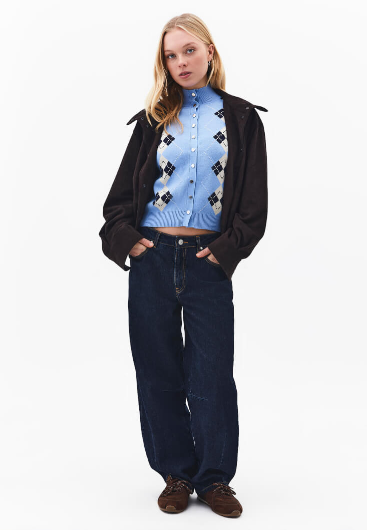 Modern ve katmanlı bir görünüm için orta bel barrel-fit pantolonlar ve süet spor ayakkabılarla kombinleyebilir; üzerine alacağınız süet bomber ceketlerle dokusal bir zenginlik yakalayabilirsiniz. Askılı tote çantalar ve burgu detaylı küpelerle stilinizi tamamlayarak detaylarda fark yaratın. Hem serin hafta sonu yürüyüşlerinde hem de yoğun şehir temposunda sizi sıcak tutacak, fonksiyonelliği ve tasarımı tek bir formda buluşturan ikonik bir parça.