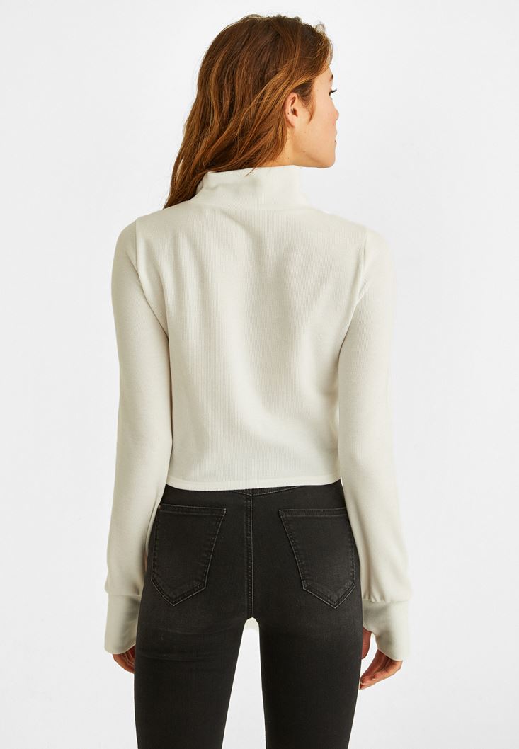 • Bayan Krem Yüksek Yaka Sweatshirt