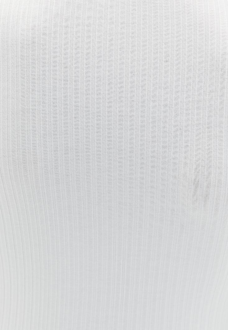 Viskon içerikli özel doku, bedeni saran esnek fit, uzun kollu, yüksek yaka, jakarlı doku.