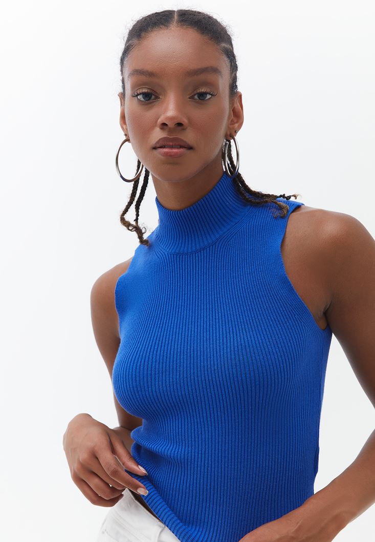 • Bayan Mavi Yüksek Yaka Triko Atlet