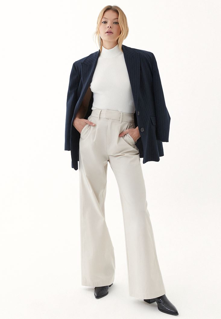 Viskon karışımlı fitilli triko, yüksek yaka, crop kesim, bedeni saran esnek fit.