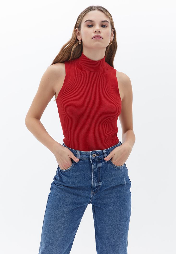 • Bayan Kırmızı Yüksek Yaka Triko Atlet