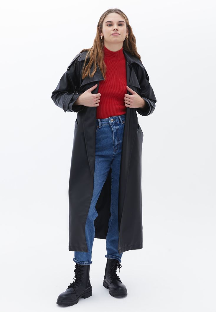 Viskon karışımlı fitilli triko, yüksek yaka, crop kesim, bedeni saran esnek fit.
