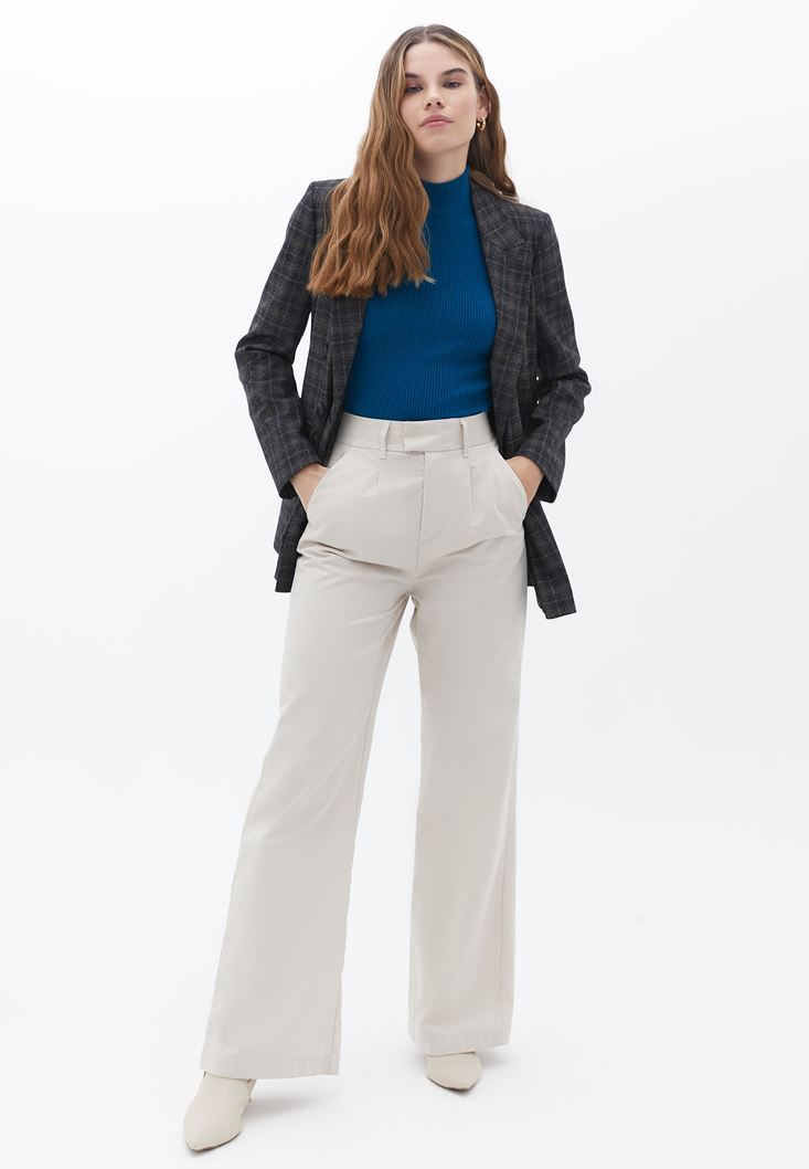 Viskon karışımlı fitilli triko, yüksek yaka, crop kesim, bedeni saran esnek fit.