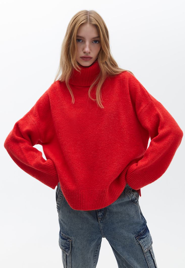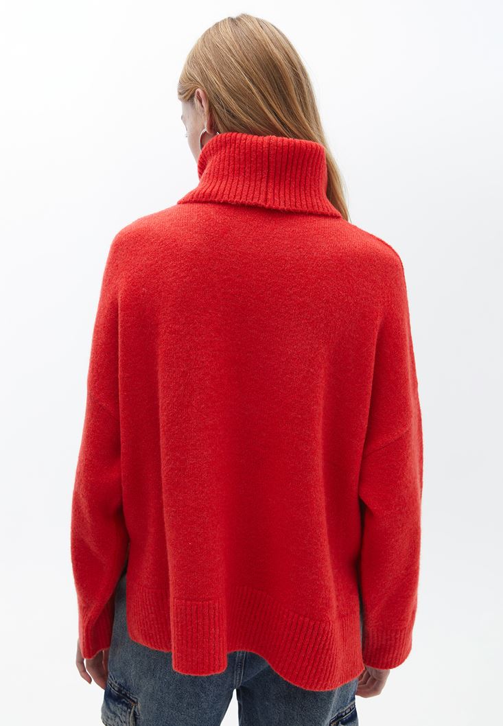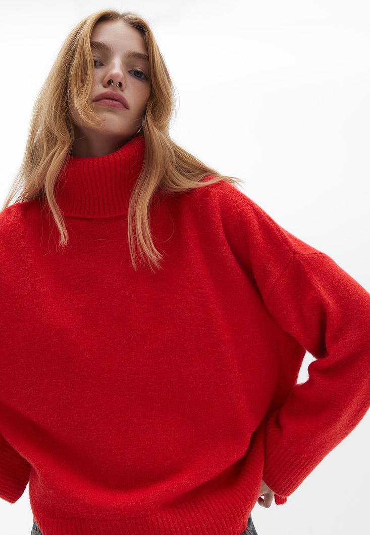 • Bayan Kırmızı Yüksek Yaka Triko Kazak