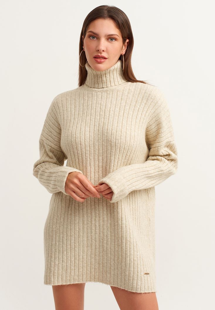 • Bayan Bej Yüksek Yaka Triko Tunik