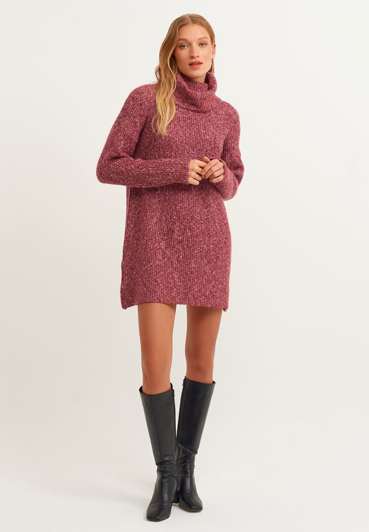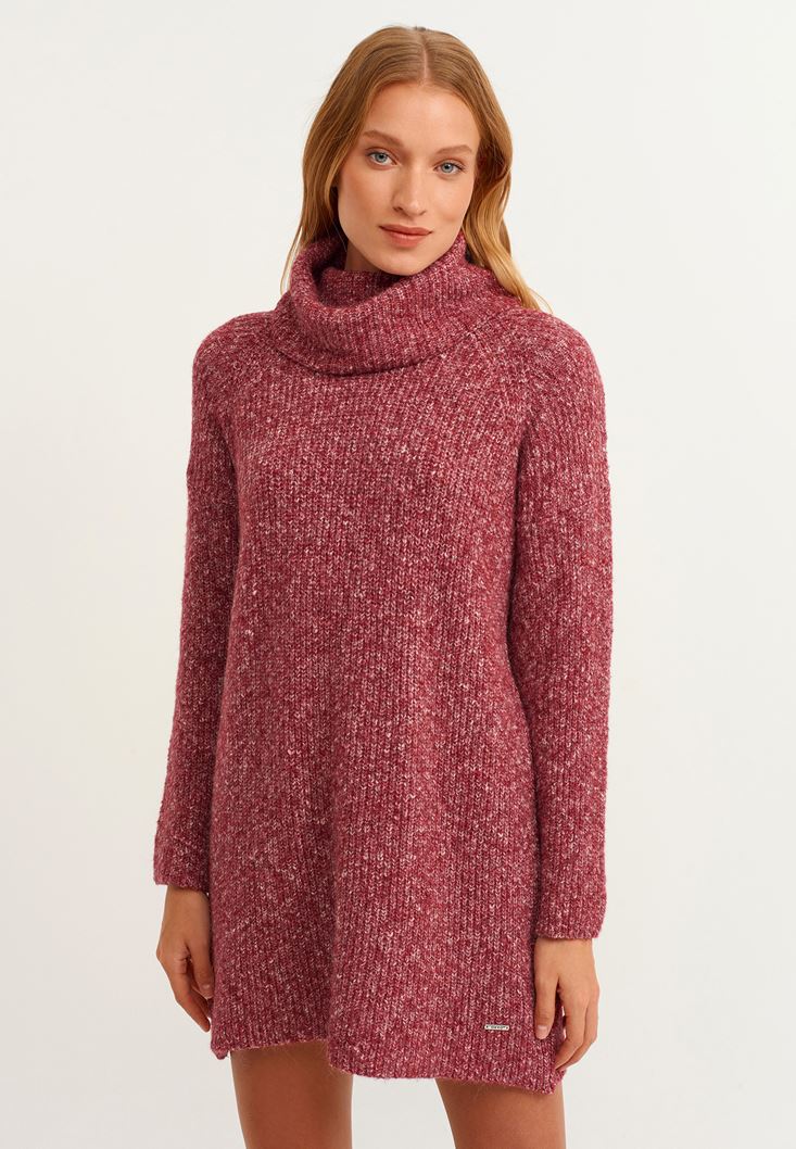• Bayan Bordo Yüksek Yaka Triko Tunik