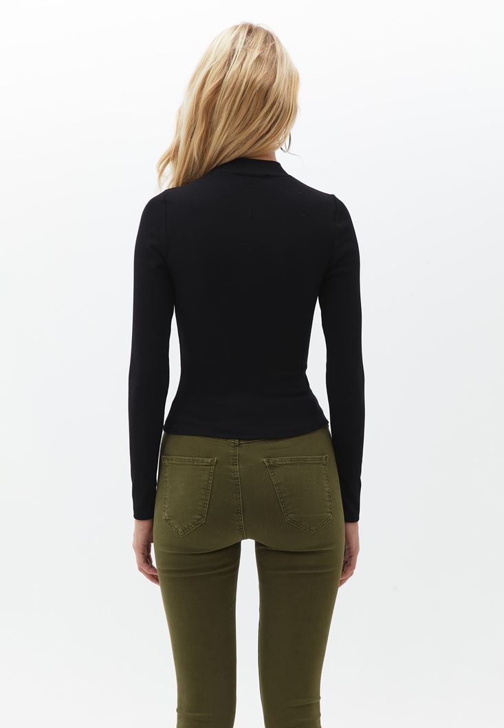• Bayan Siyah Yüksek Yaka Uzun Kollu Tişört