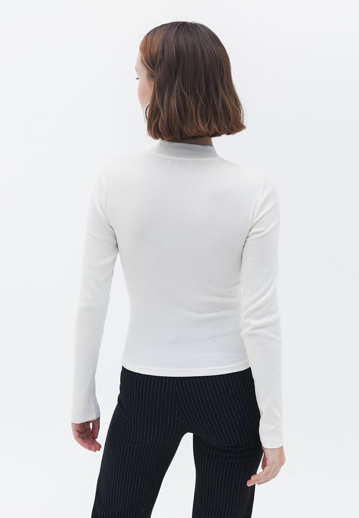 Krem Yüksek Yaka Uzun Kollu Tişört
