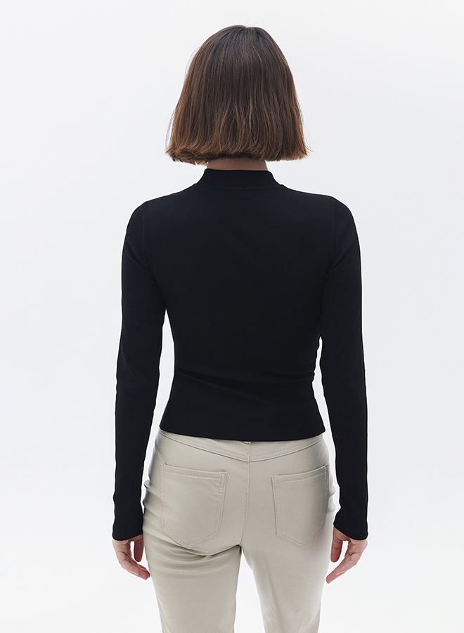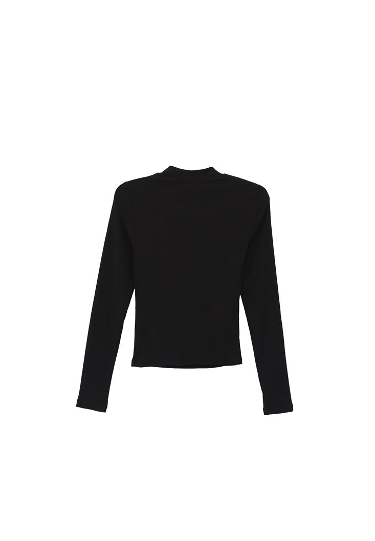 Siyah Yüksek Yaka Uzun Kollu Tişört