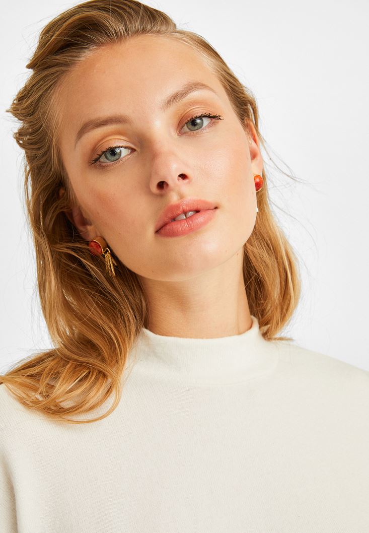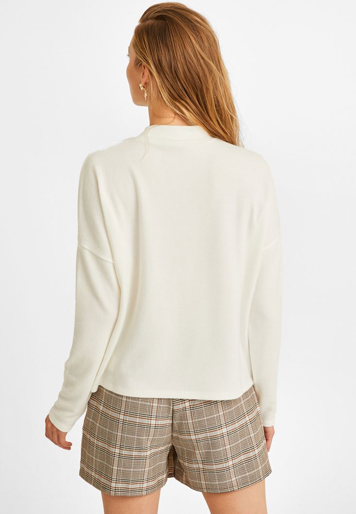 Krem Yüksek Yaka Yumuşak Tuşeli Kazak