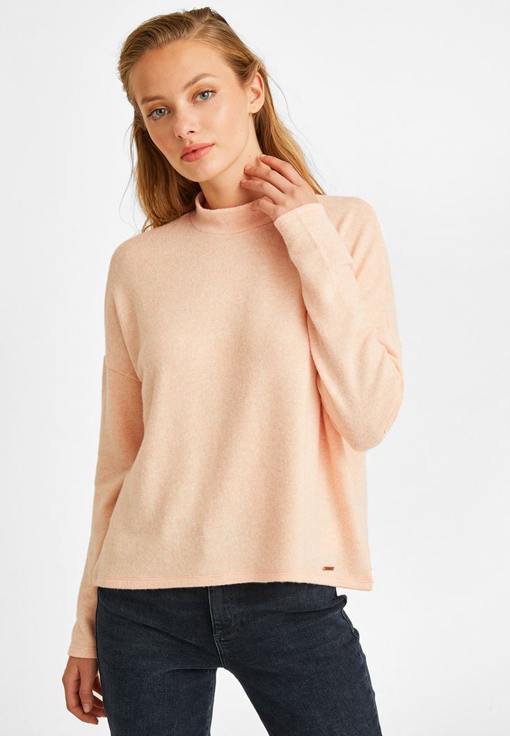 • Bayan Pembe Yüksek Yaka Yumuşak Tuşeli Kazak