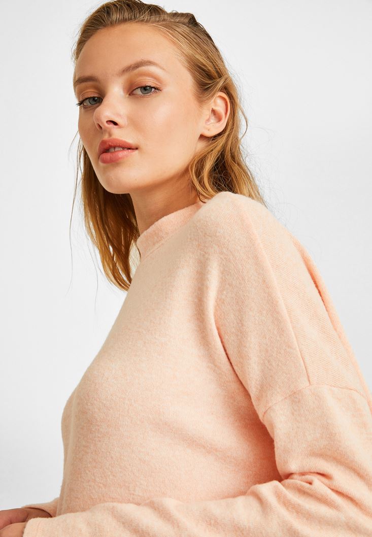 Pembe Yüksek Yaka Yumuşak Tuşeli Kazak