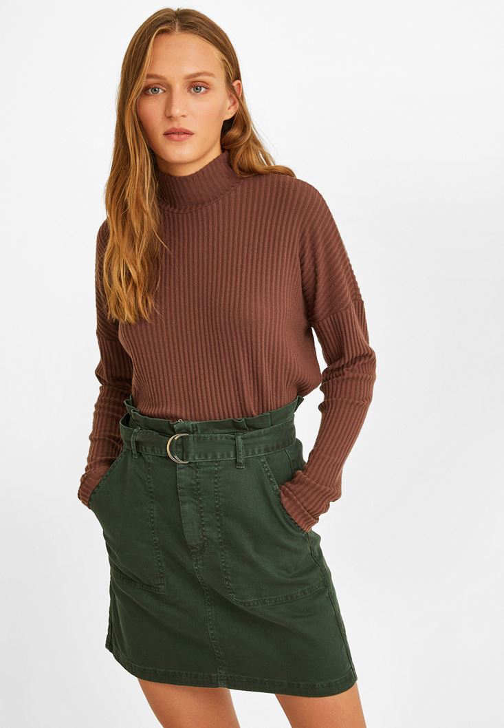 • Bayan Kahverengi Yüksek Yakalı Kazak