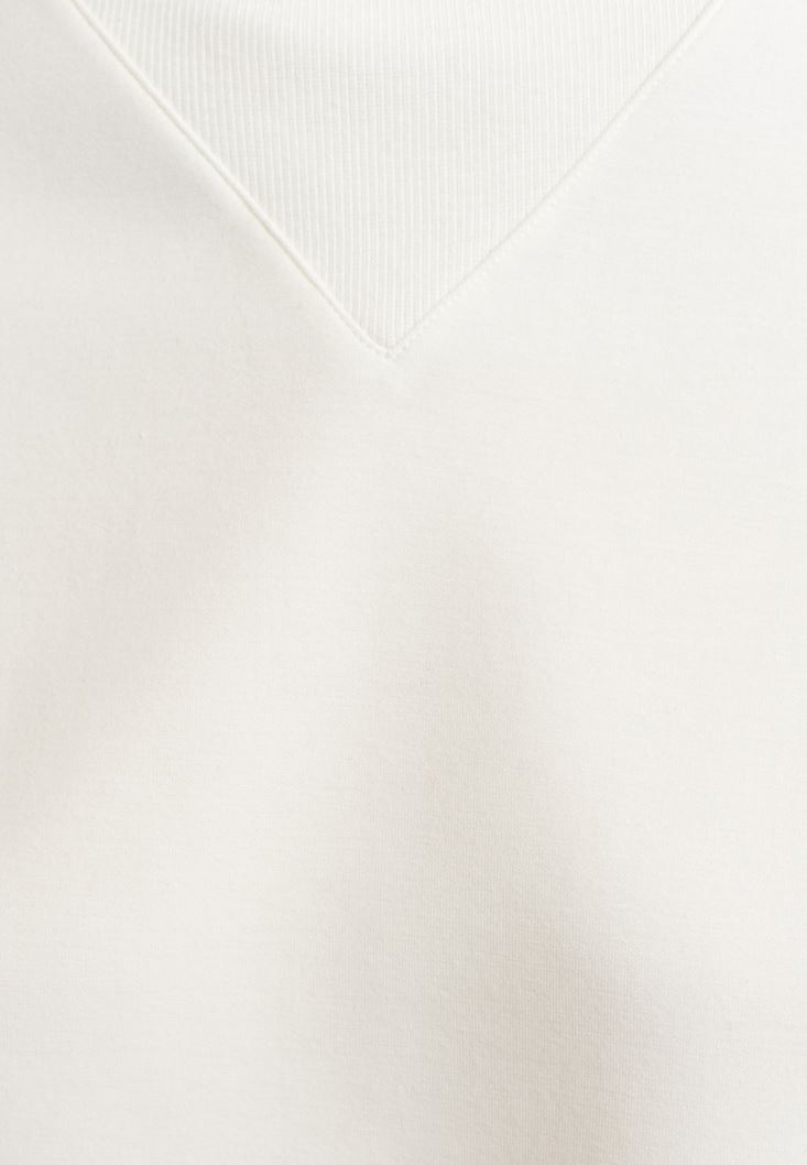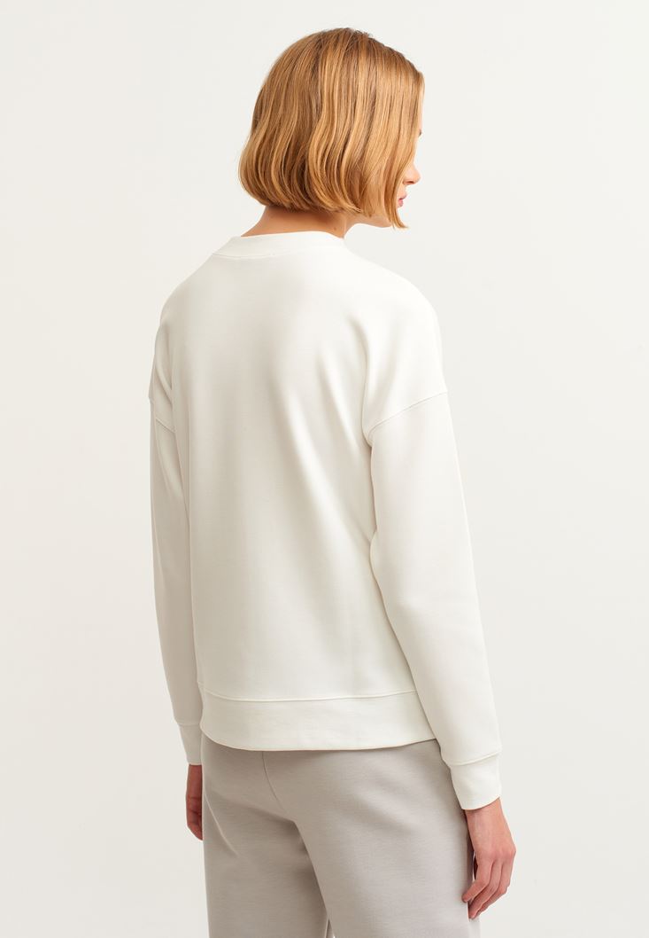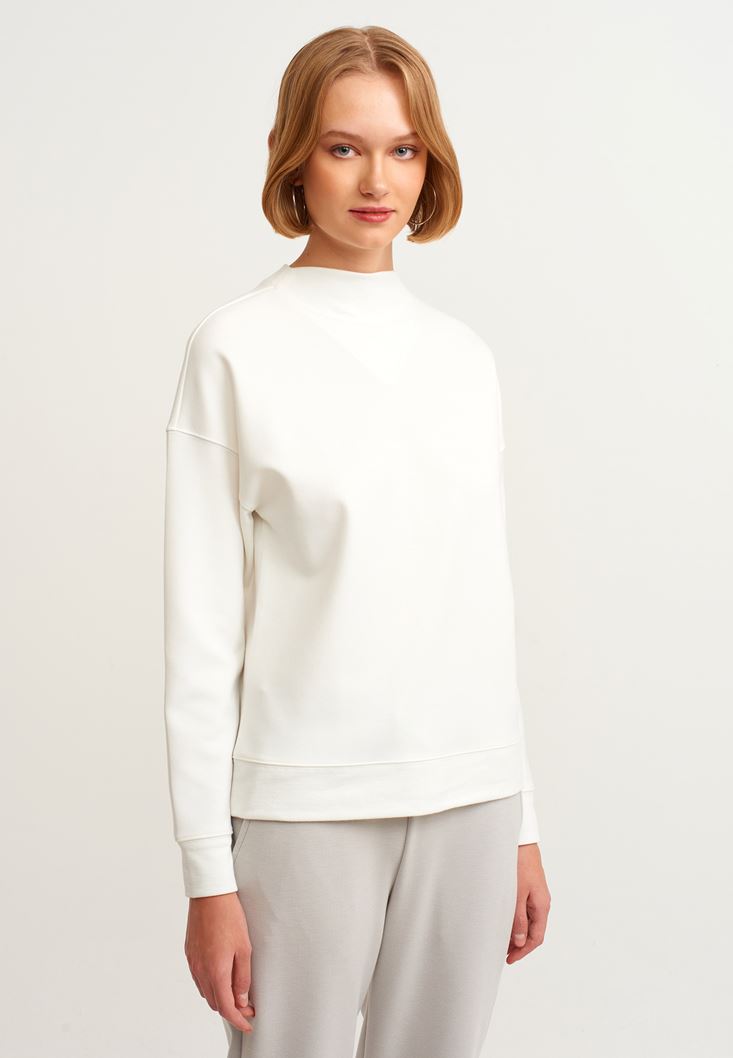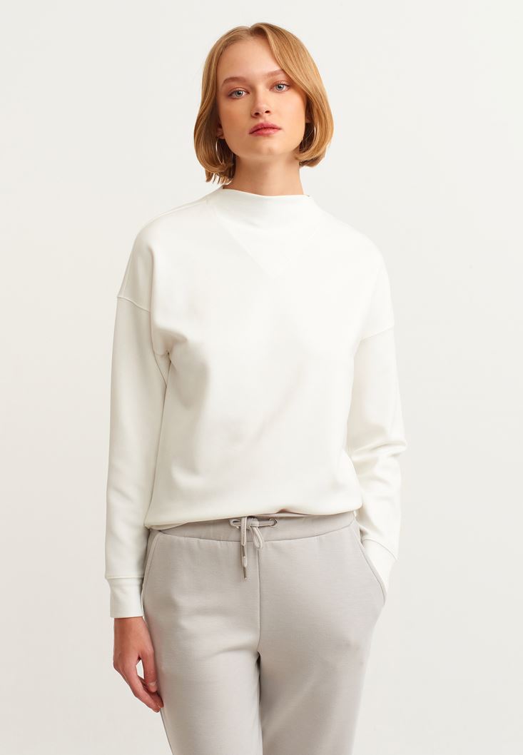 Krem Yüksek Yakalı Sweatshirt