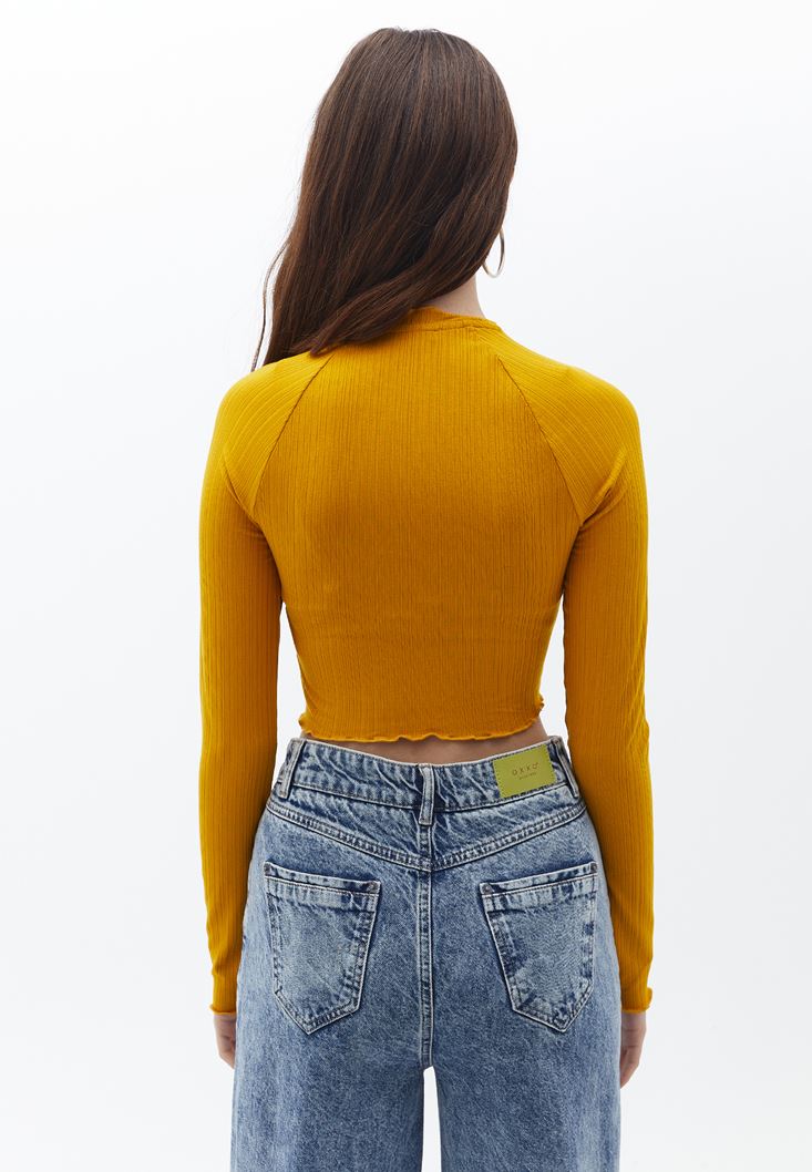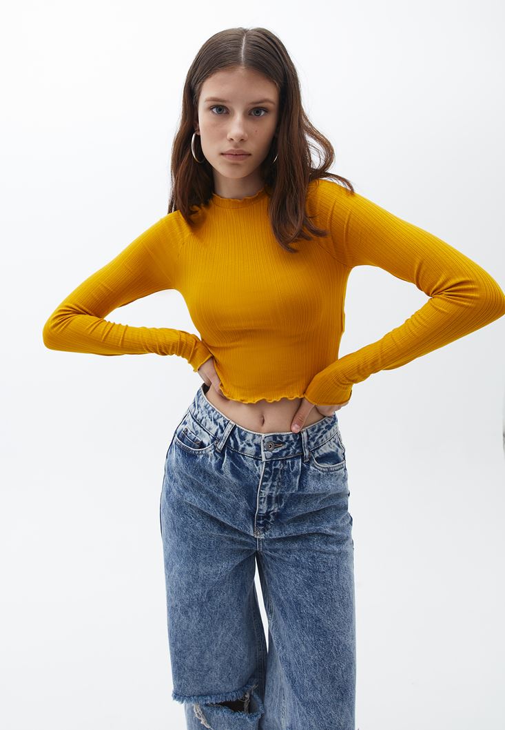 Sarı Yüksek Yakalı Uzun Kollu Tişört