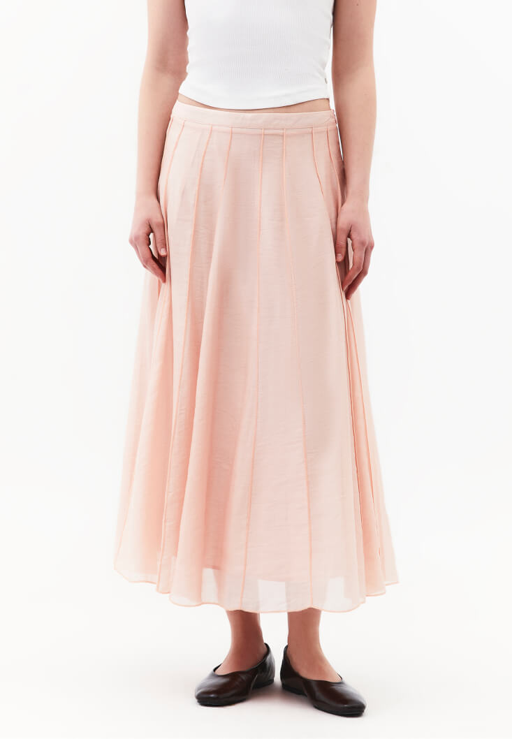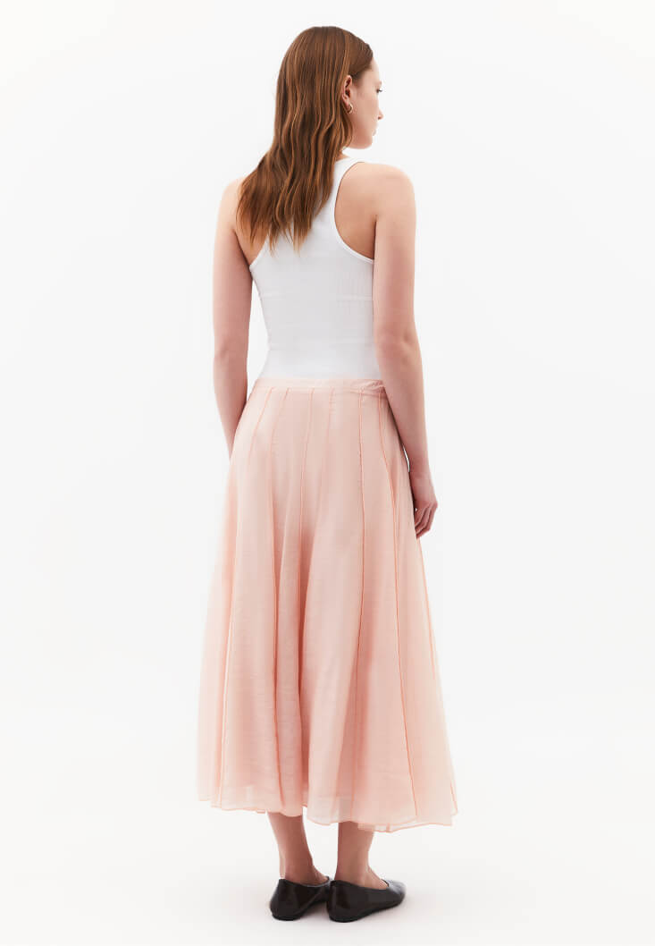 Pembe Yüksel Bel Midi Etek ( TENCEL™ )