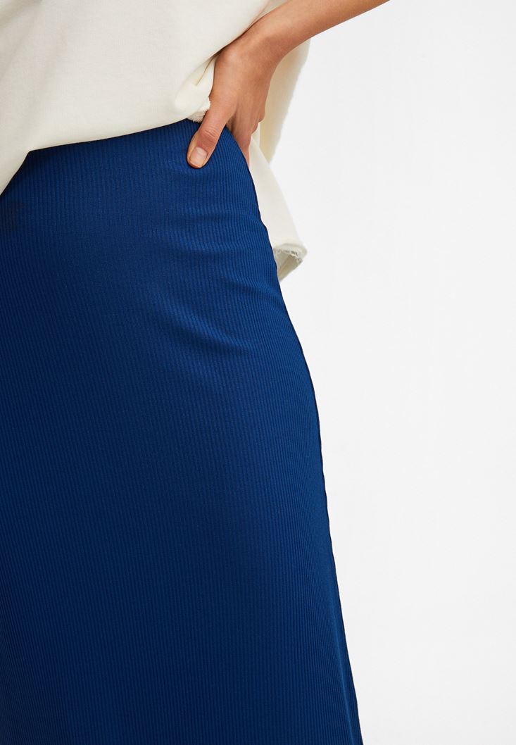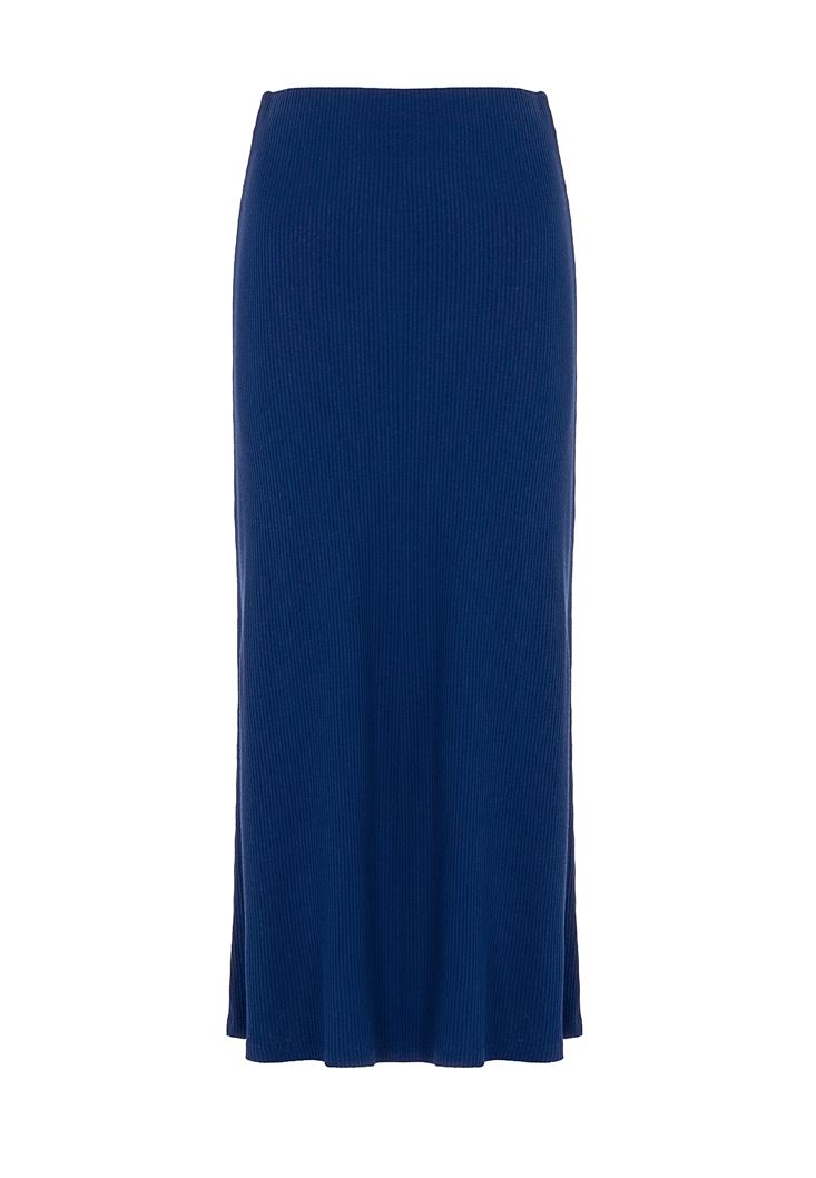 • Bayan Lacivert Yüksel Bel Midi Etek