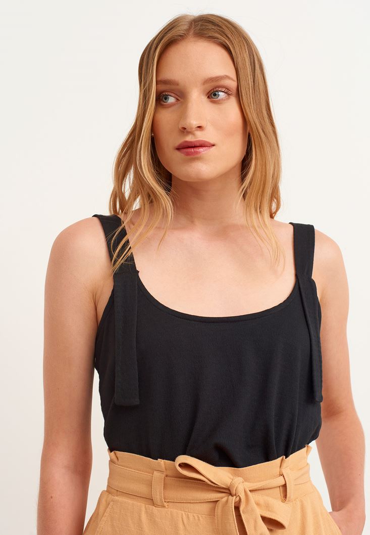 • Bayan Siyah Yumuşak Dokulu Askılı Atlet