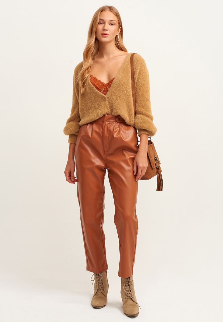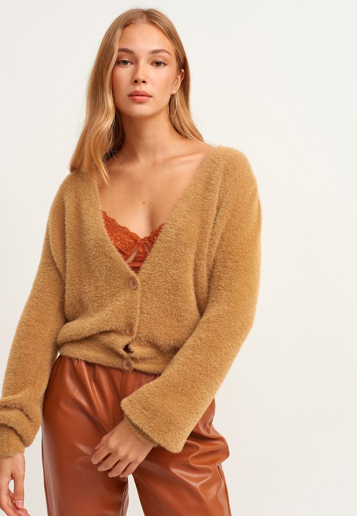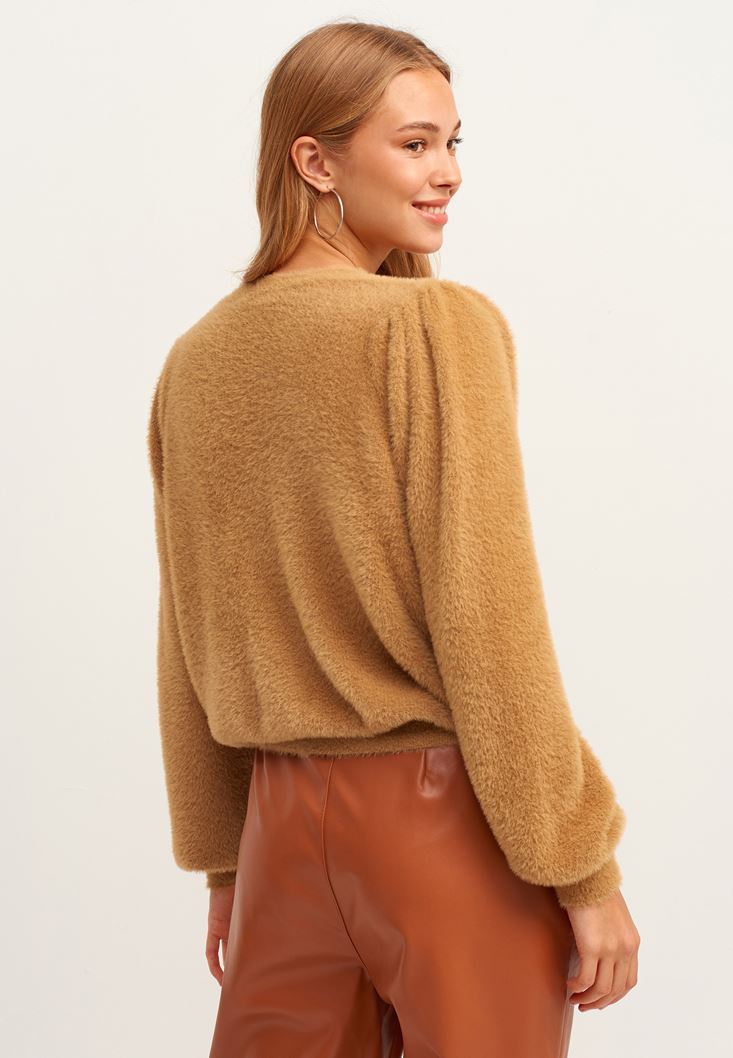 Kahverengi Yumuşak Dokulu Balon Kollu Hırka
