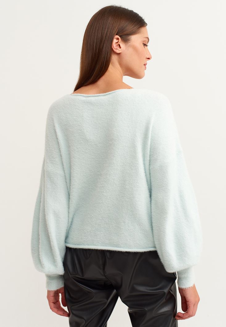 Mavi Yumuşak Dokulu Balon Kollu Triko