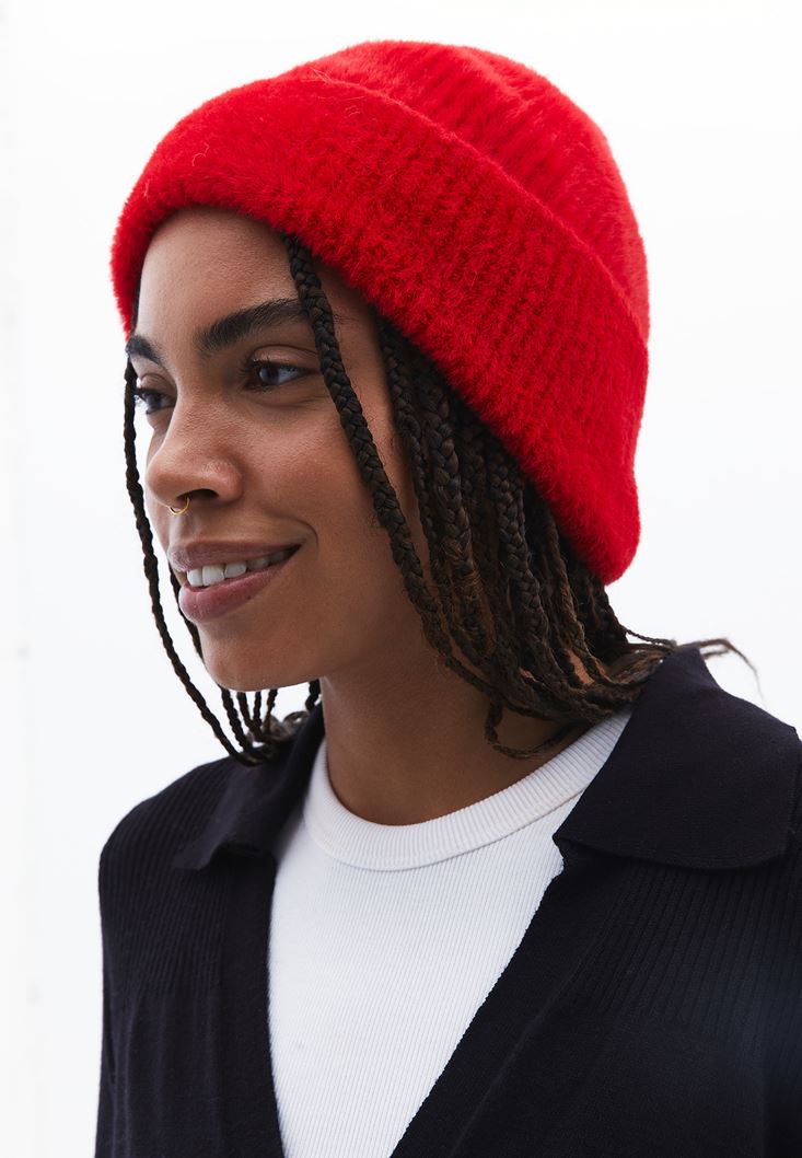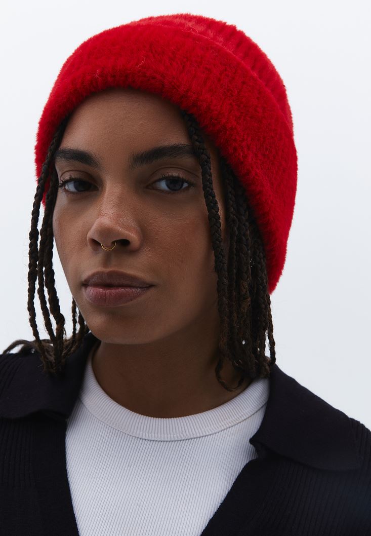 • Bayan Kırmızı Yumuşak Dokulu Bere