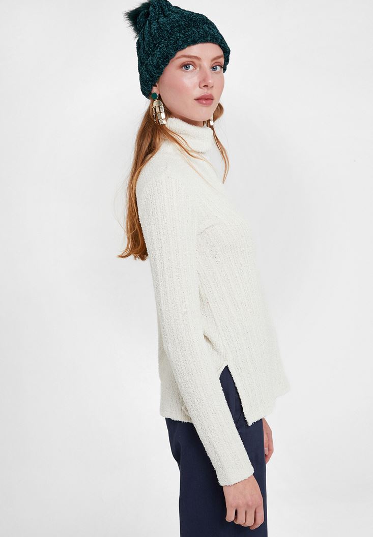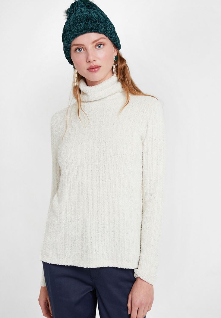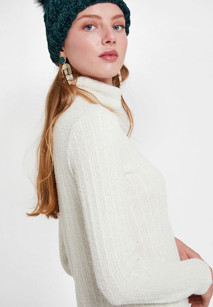 • Bayan Krem Yumuşak Dokulu Boğazlı Triko