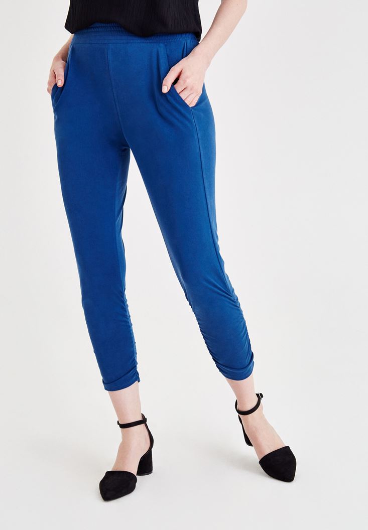 Lacivert Yumuşak Dokulu Büzgü Detaylı Pantolon