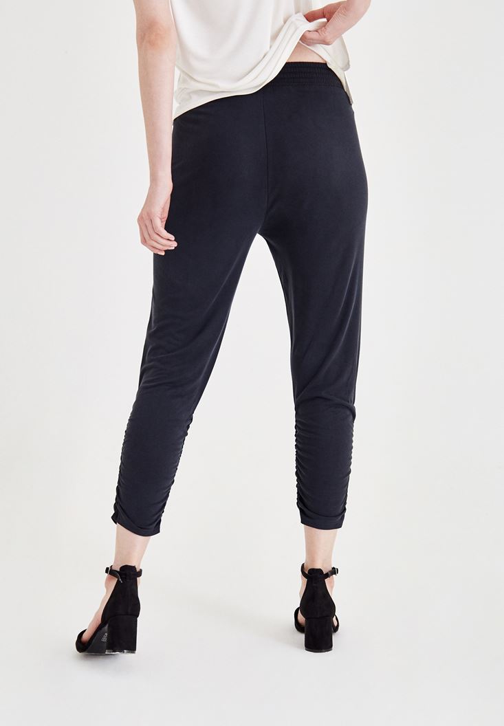 • Bayan Siyah Yumuşak Dokulu Büzgü Detaylı Pantolon