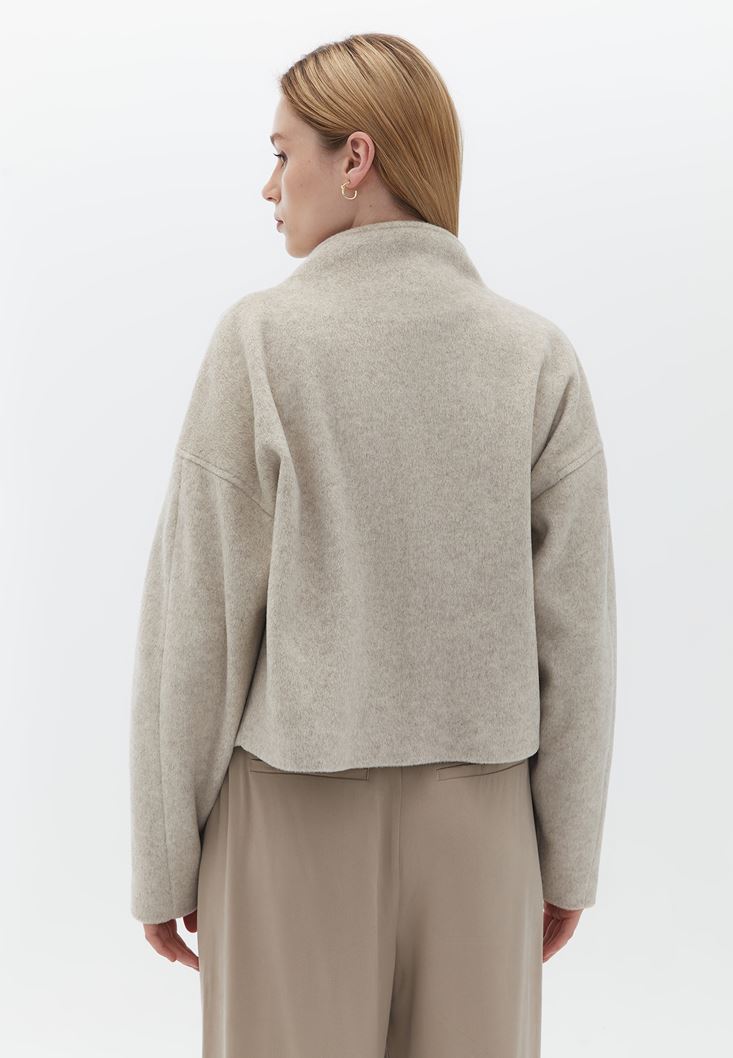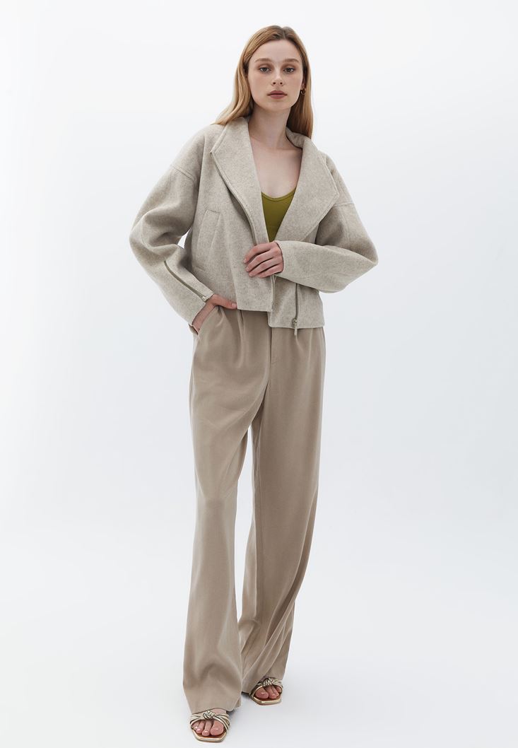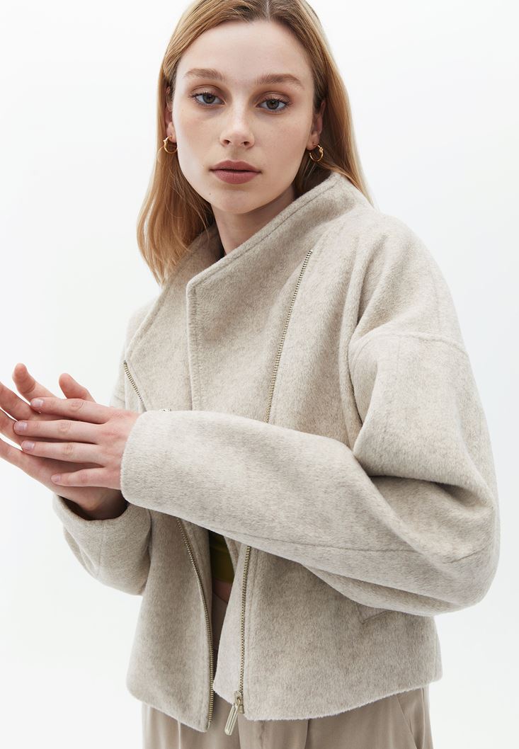 • Bayan Bej Yumuşak Dokulu Crop Ceket