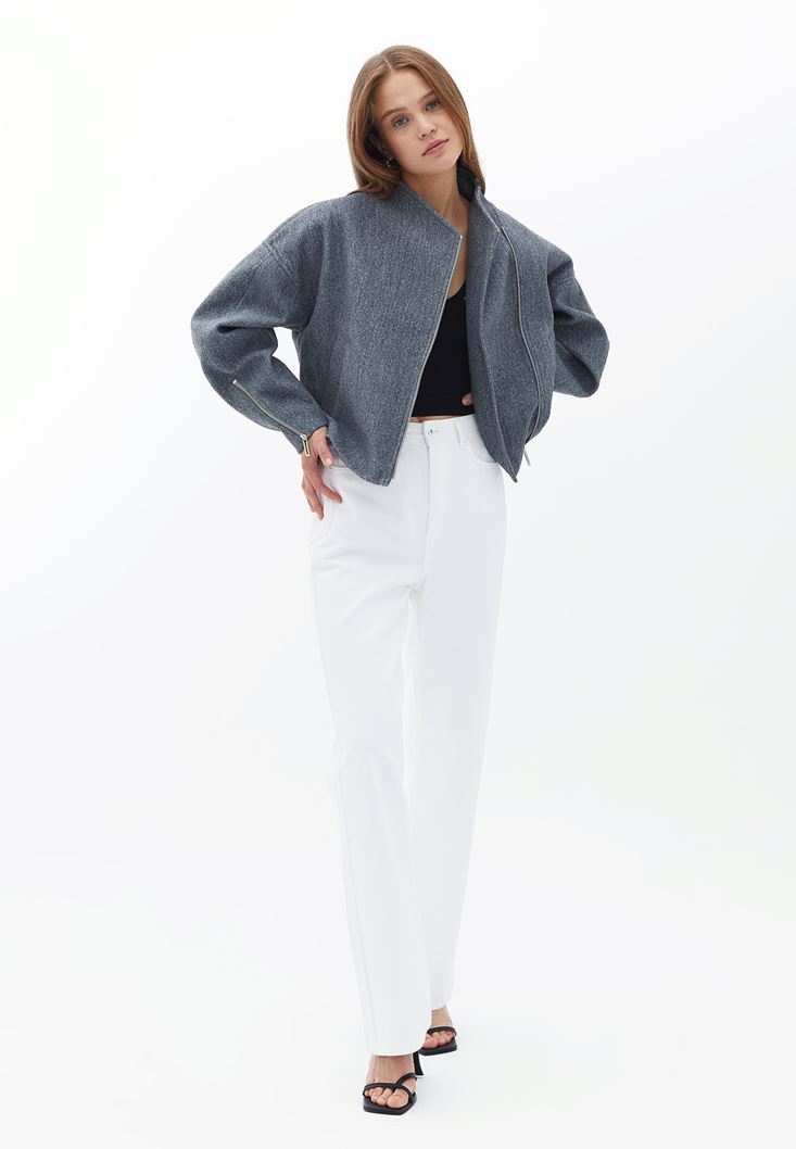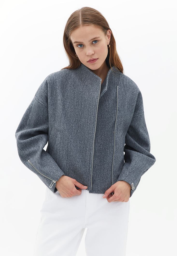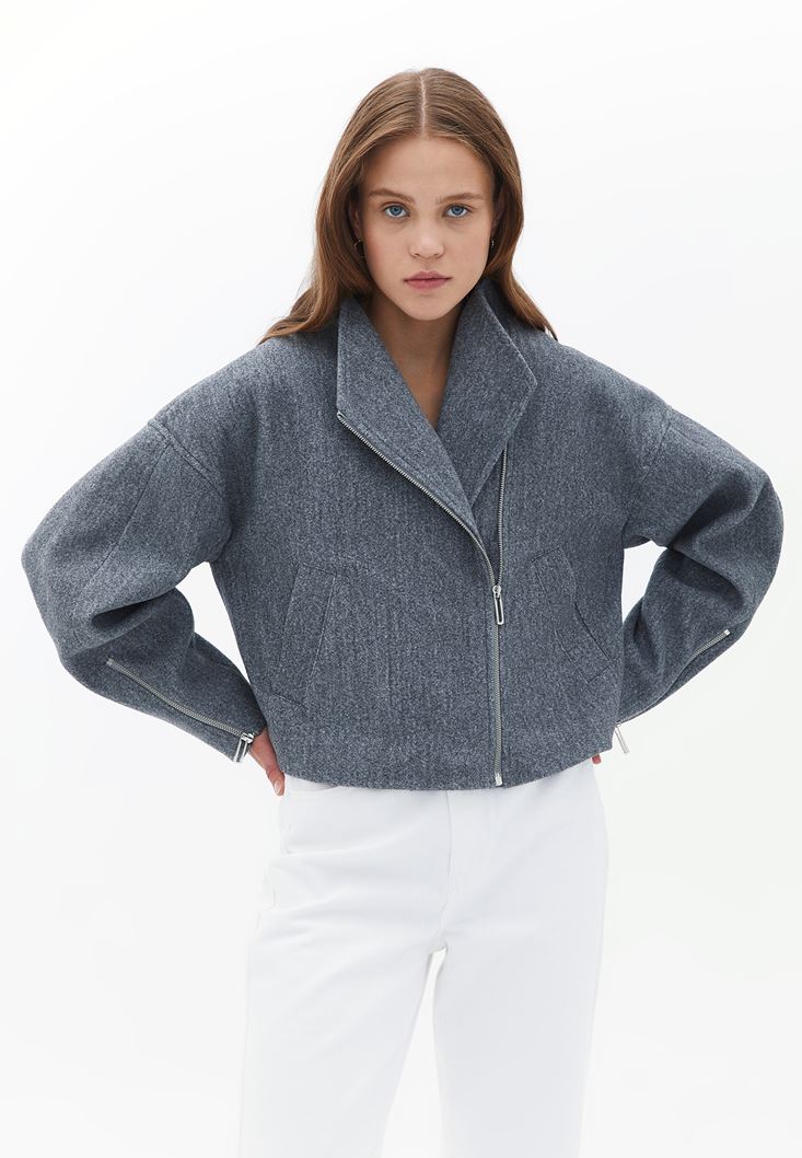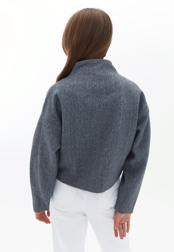 • Bayan Gri Yumuşak Dokulu Crop Ceket