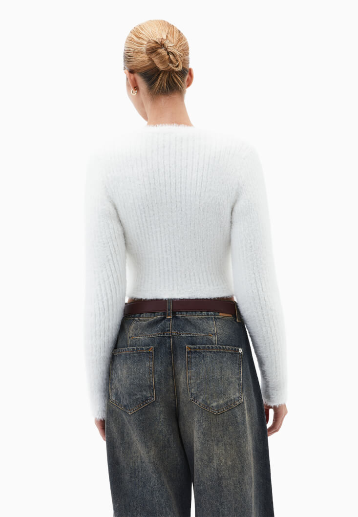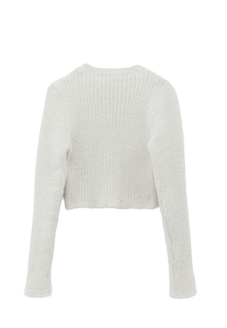 • Bayan Krem Yumuşak Dokulu Crop Kazak