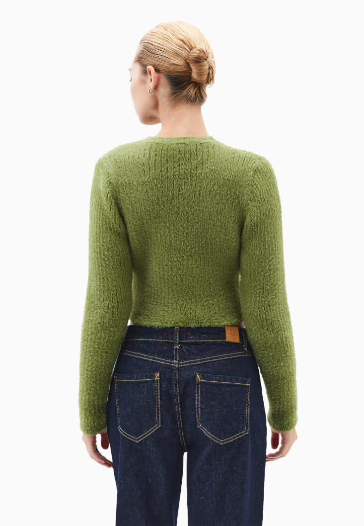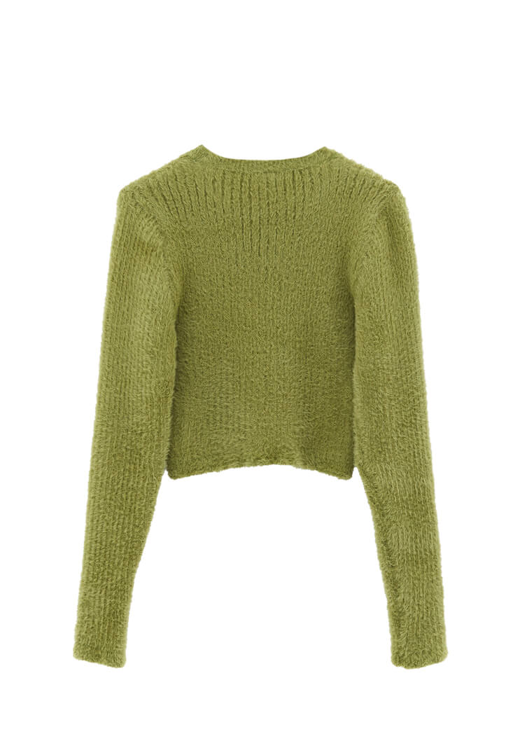 • Bayan Yeşil Yumuşak Dokulu Crop Kazak