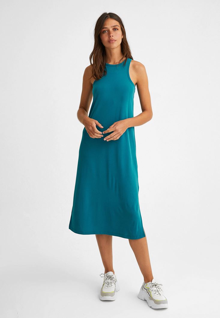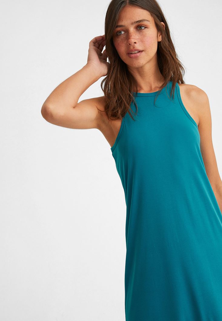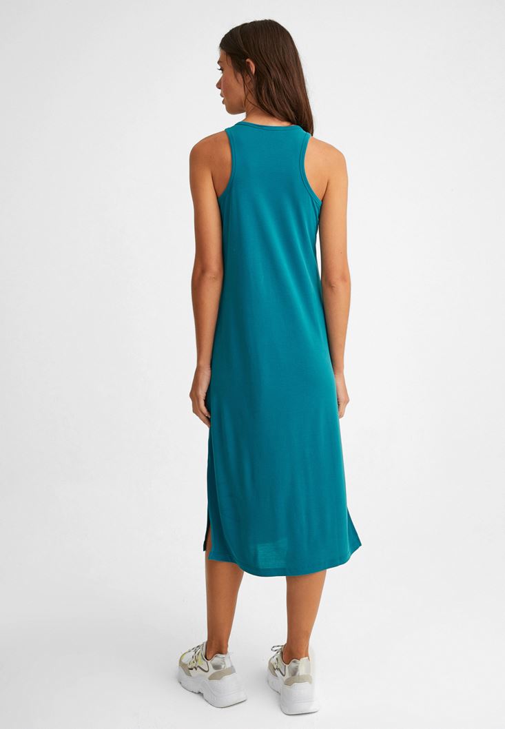 Yumuşak Dokulu Halter Yaka Elbise modeli tarzınızı ön plana çıkarırken konforlu hissetmenizi sağlayacak yazlık elbise modeli. Bu yazın favori parçalarından olacak olan kadın elbise modeli pürüzsüz ve yumuşak bir dokuya sahiptir. Giyimi oldukça rahat olan ve konforlu hissettiren spor elbise modeli tüm yaz boyunca severek kullanacağınız yazlık elbise modelleri arasında. Nefes alan ve serin tutan, rahat kalıplı halter yaka elbise modeli sade görüntüsü ile vazgeçilmez parçalarınızdan birisi olacak.