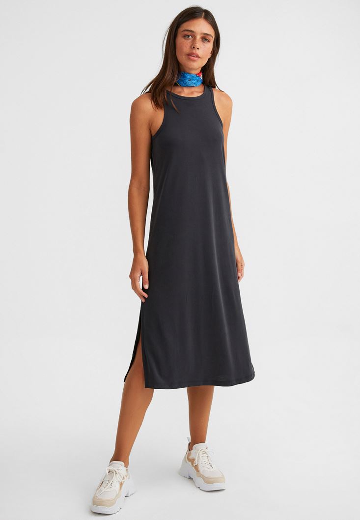 Yumuşak Dokulu Halter Yaka Elbise modeli tarzınızı ön plana çıkarırken konforlu hissetmenizi sağlayacak yazlık elbise modeli. Bu yazın favori parçalarından olacak olan kadın elbise modeli pürüzsüz ve yumuşak bir dokuya sahiptir. Giyimi oldukça rahat olan ve konforlu hissettiren spor elbise modeli tüm yaz boyunca severek kullanacağınız yazlık elbise modelleri arasında. Nefes alan ve serin tutan, rahat kalıplı halter yaka elbise modeli sade görüntüsü ile vazgeçilmez parçalarınızdan birisi olacak.