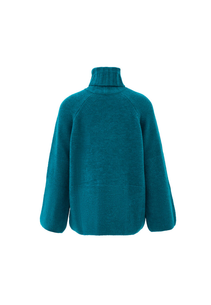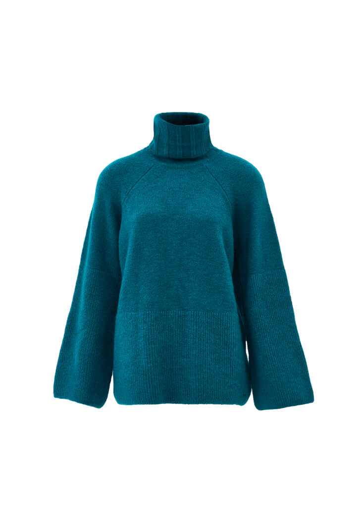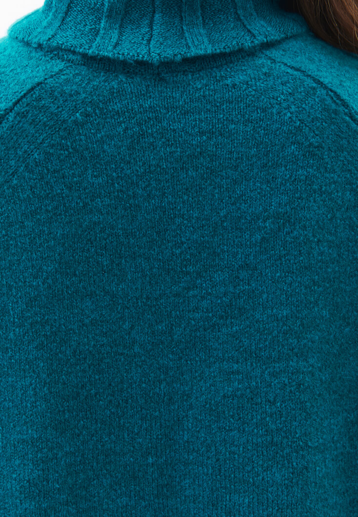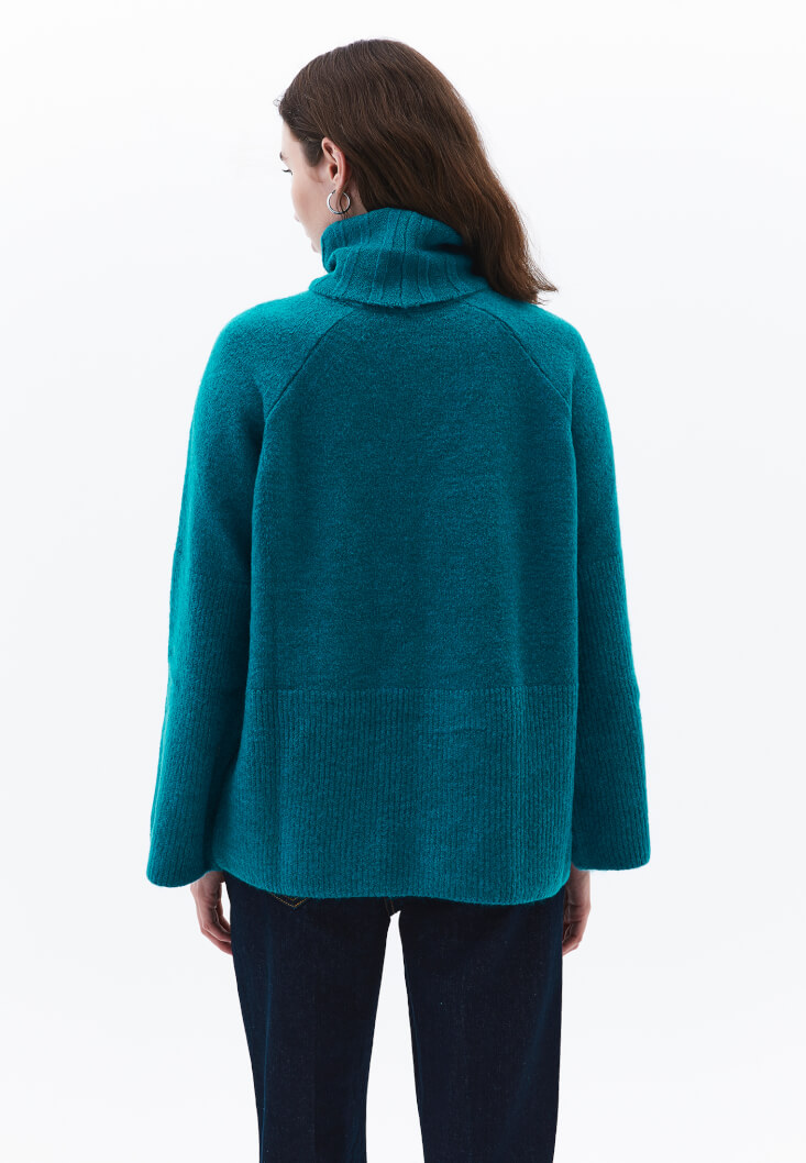 Bedenden uzak rahat fit, balıkçı yaka, geniş kol detaylı, yakası jakarlı örgü, yumuşak dokulu.