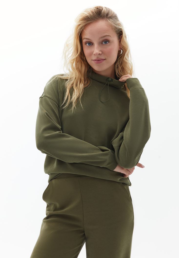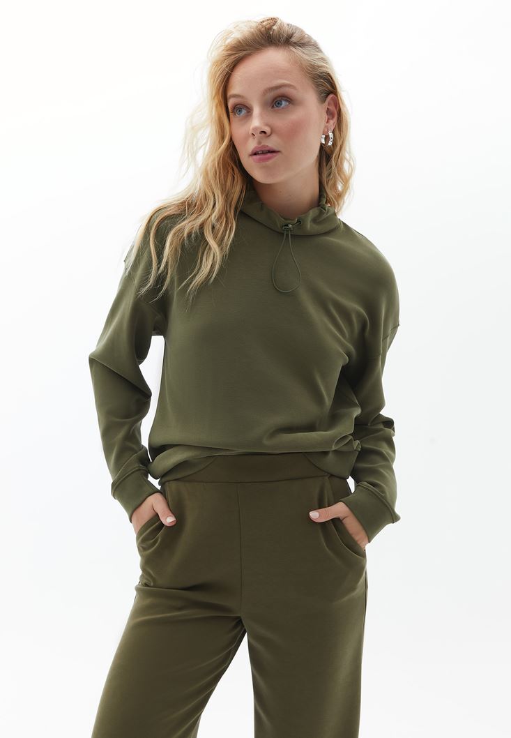• Bayan Yeşil Yumuşak Dokulu Loose-Fit Sweatshirt