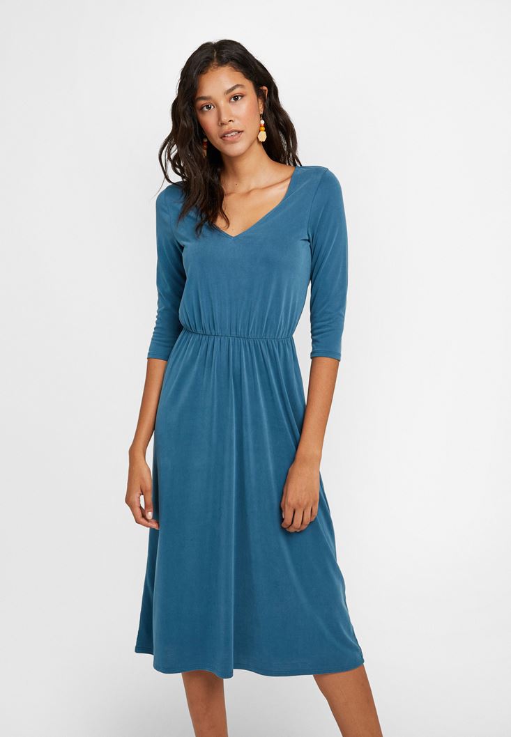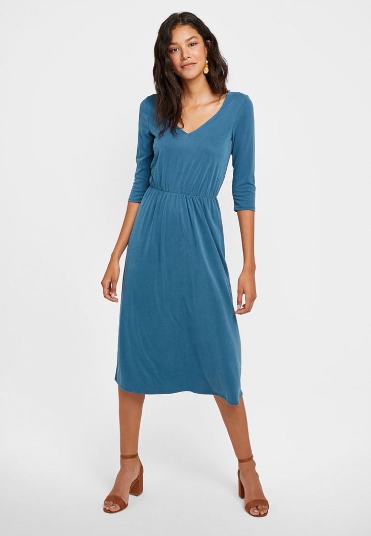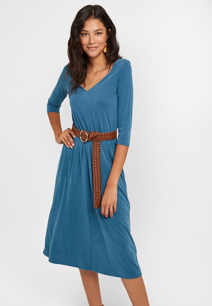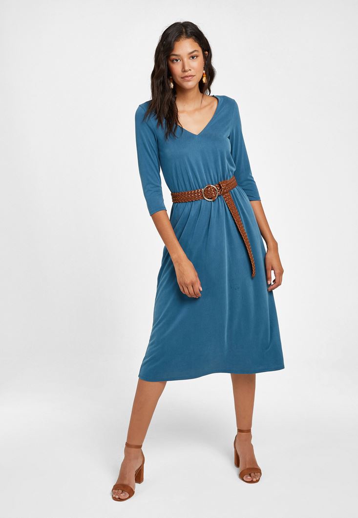 • Bayan Mavi Yumuşak Dokulu Midi Elbise