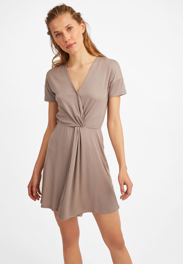 • Bayan Kahverengi Yumuşak Dokulu Mini Elbise