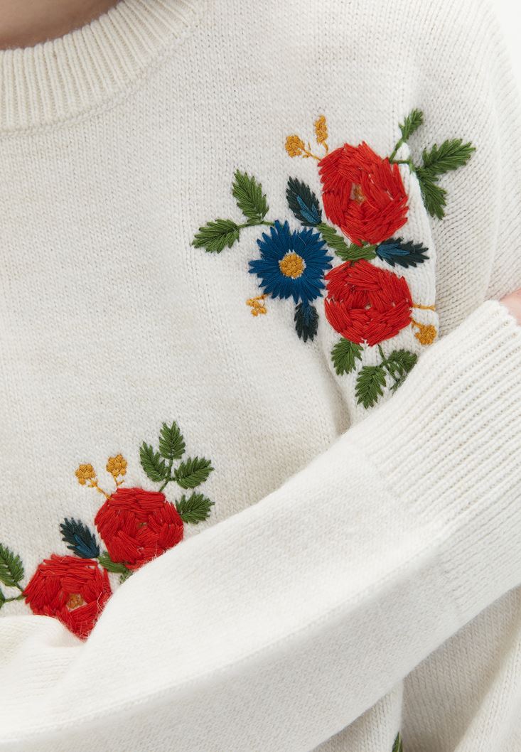 • Bayan Bej Yumuşak Dokulu Nakışlı Kazak