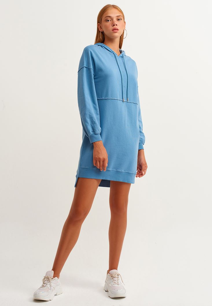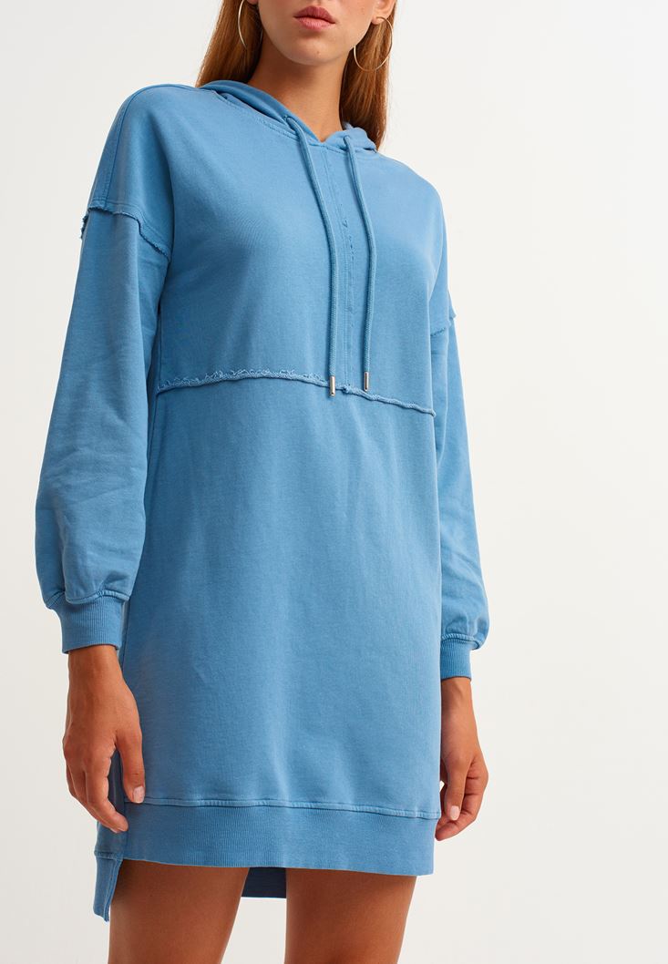 • Bayan Mavi Yumuşak Dokulu Sweat Elbise