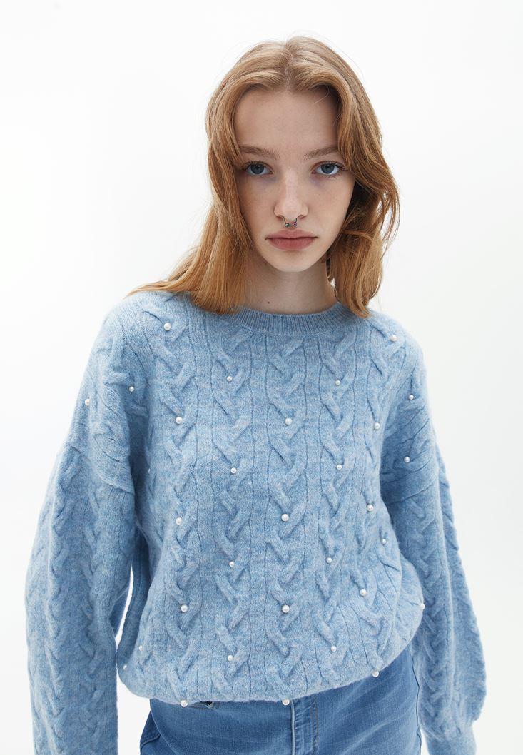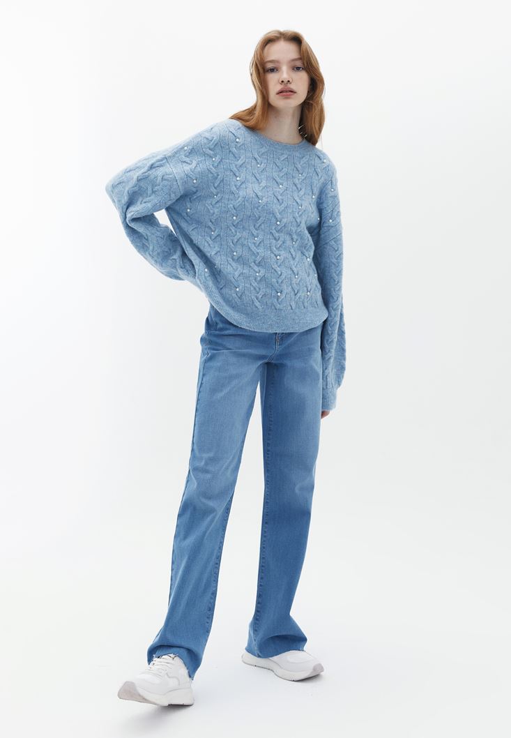 • Bayan Mavi Yumuşak Dokulu Triko Kazak