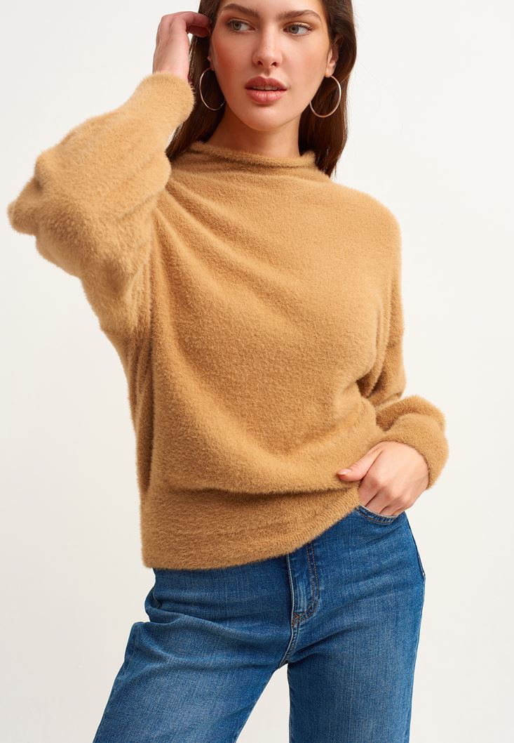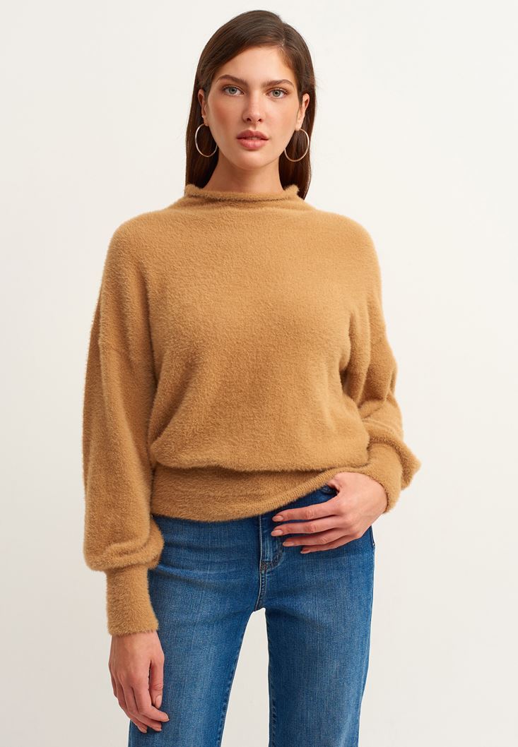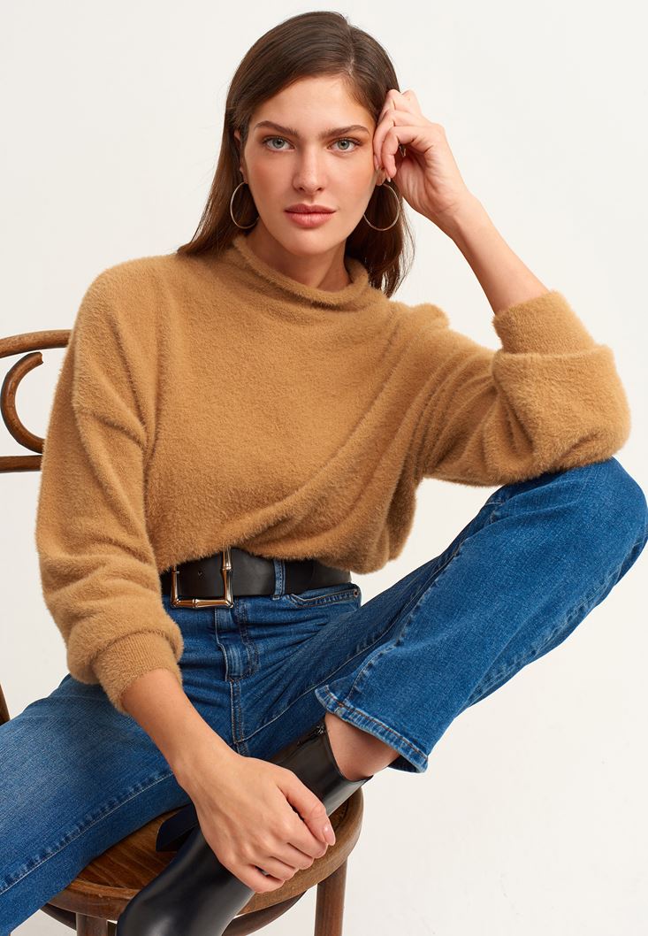 • Bayan Kahverengi Yumuşak Dokulu Uzun Kollu Triko