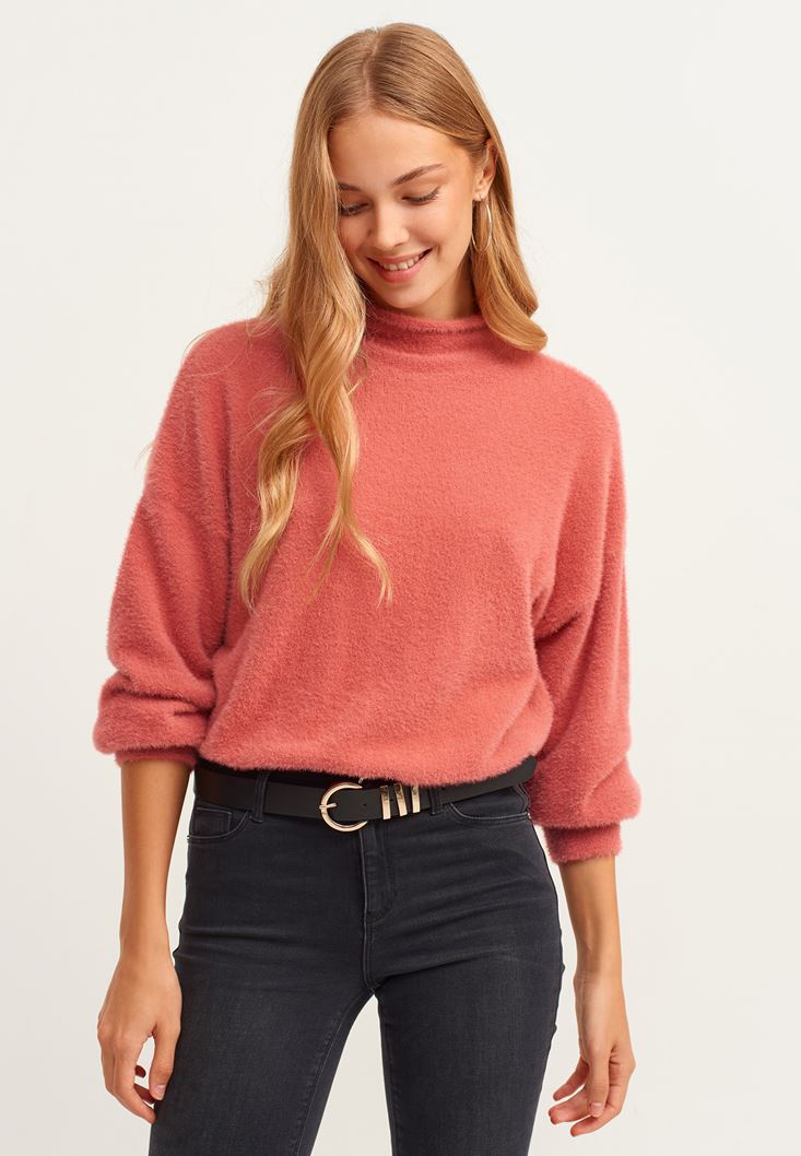 • Bayan Pembe Yumuşak Dokulu Uzun Kollu Triko
