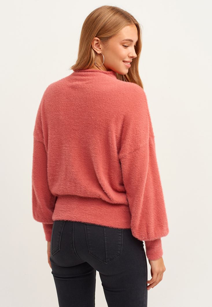 Pembe Yumuşak Dokulu Uzun Kollu Triko