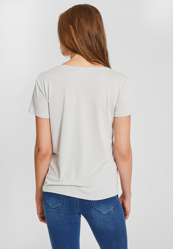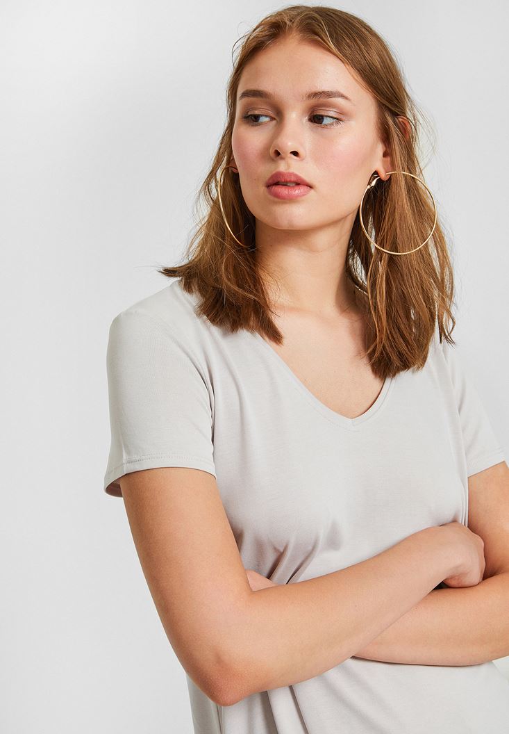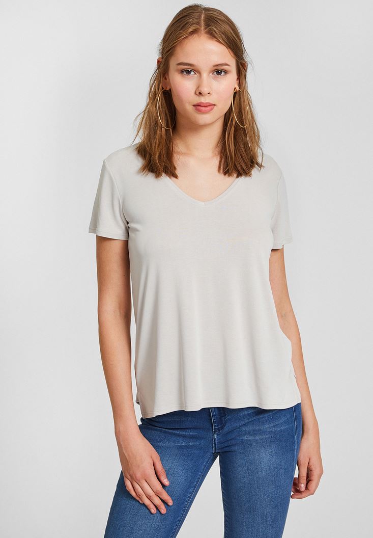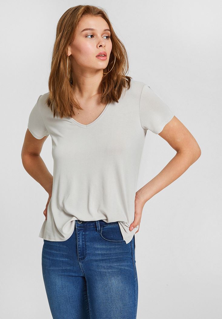 Gri Yumuşak Dokulu V Yaka Basic Tişört